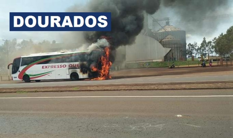 VÍDEO: Ônibus que saiu de Dourados com destino a Campo Grande pega fogo na BR-163