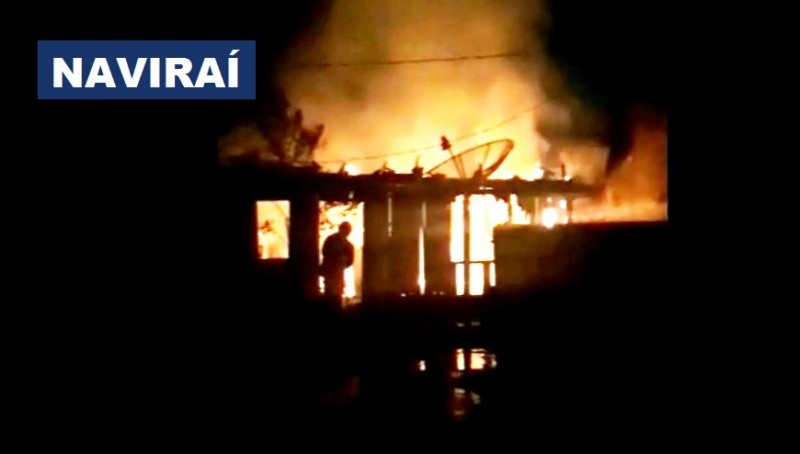 Vídeo - Na madrugada, incêndio destrói totalmente casa de madeira, em Naviraí