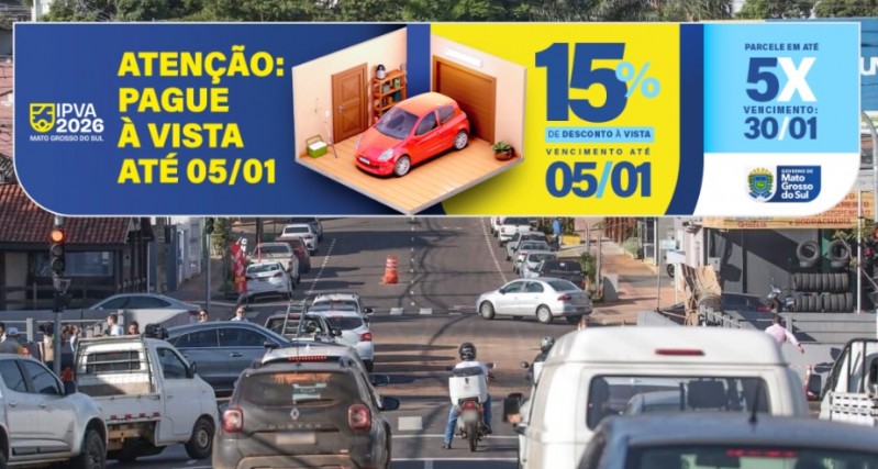 26/01/2026 Prazo para pagamento da 1ª parcela do IPVA 2026 termina nesta sexta (30) Os contribuintes sul-mato-grossenses têm até sexta-feira (30.jan), para...
