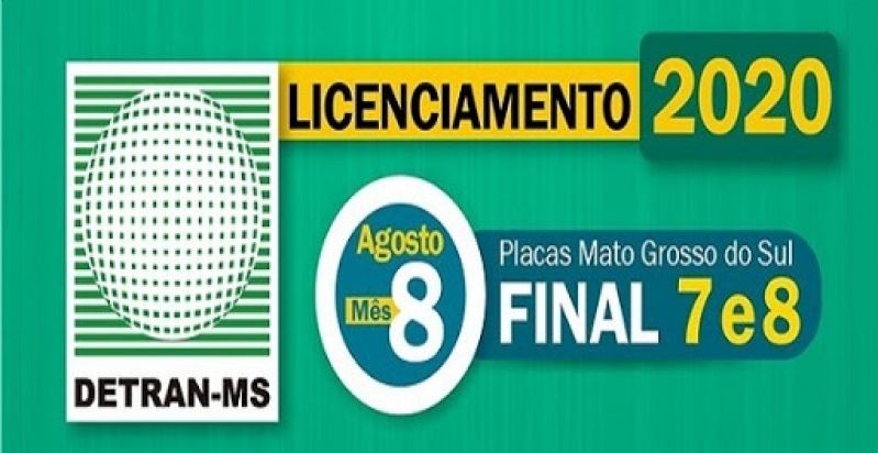 04/08/2020 Agosto é mês de licenciar veículos com placa final 7 e 8 Com a chegada do mês de agosto, o Detran-MS (Departamento Estadual de Trâ...