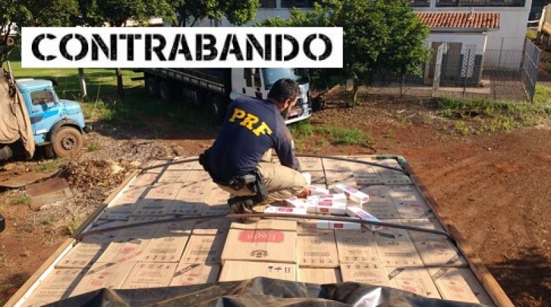 PRF apreende caminhão baú carregado com 450 mil maços de cigarro contrabandeado do Paraguai