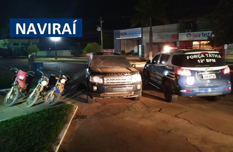 Força Tática de Navirai prende homem de 36 e dois menores de 16 anos, e recupera três motos e um Land Rover, produtos de roubo/furto