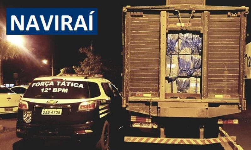 Força Tática de Naviraí apreende caminhão boiadeiro carregado com 650 caixas de cigarros contrabandeados