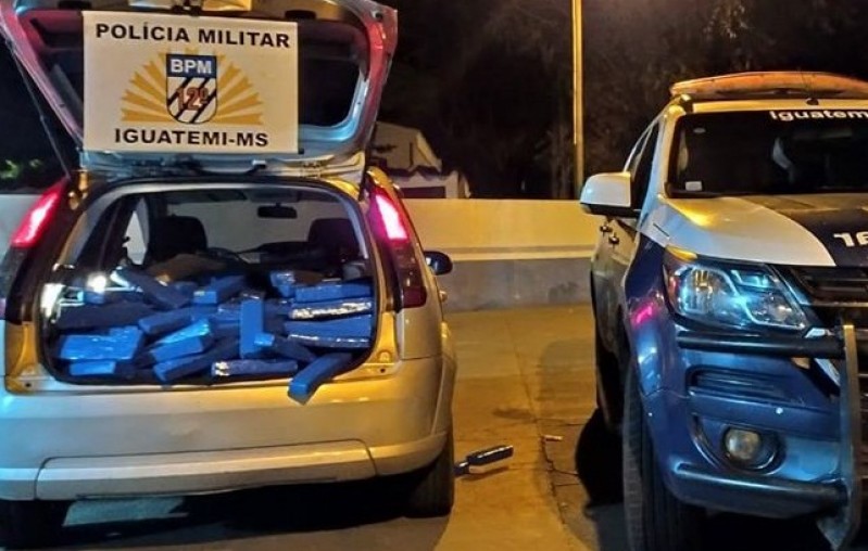Choque prende traficante com carro cheio de maconha em estrada vicinal, em Iguatemi