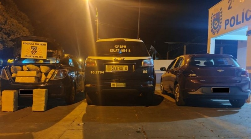 Trio fura bloqueio na MS-295, mas é preso com 181 quilos de maconha e veículos