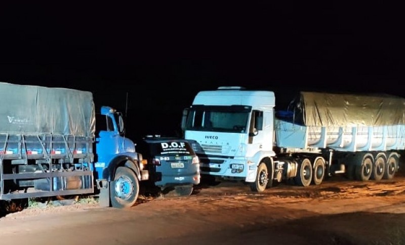 DOF apreende caminhões carregados com cigarros contrabandeados, em Iguatemi