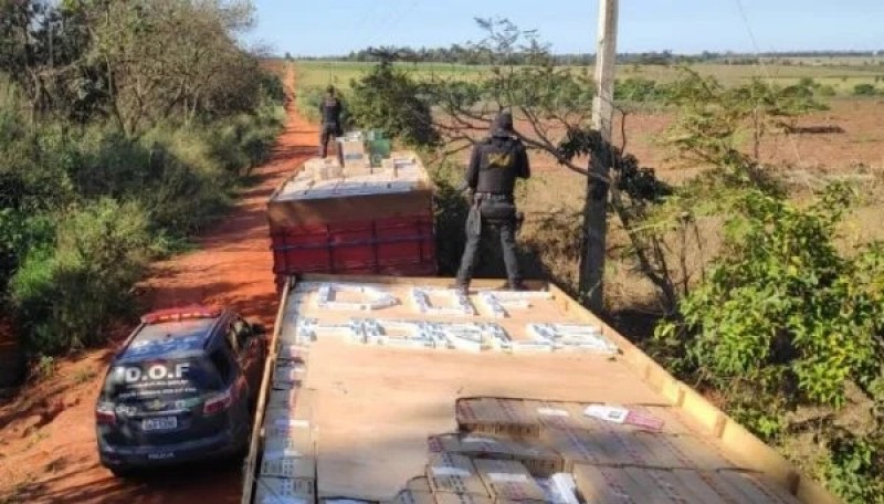 Em Itaquiraí, Ford Cargo abandonado é apreendido pelo DOF com 21 mil pacotes de cigarros