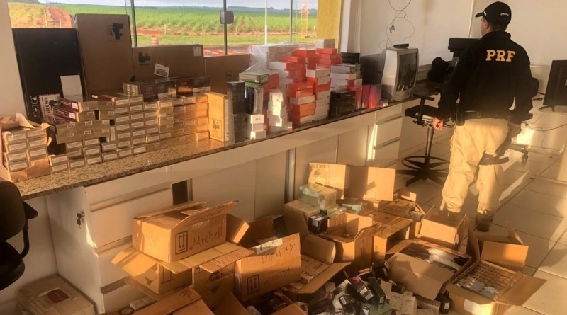 PRF e PM apreendem veículo lotado com produtos contrabandeados em Itaquiraí