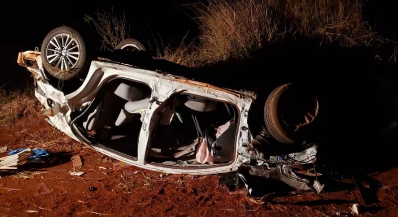 14/08/2019 Mulheres morrem e pai e filho ficam feridos após carro atropelar capivara e capotar, em Sidrolândia ...