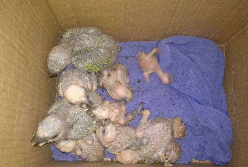 PMA de Naviraí e PM resgatam filhotes de papagaios, em Novo Horizonte do Sul
