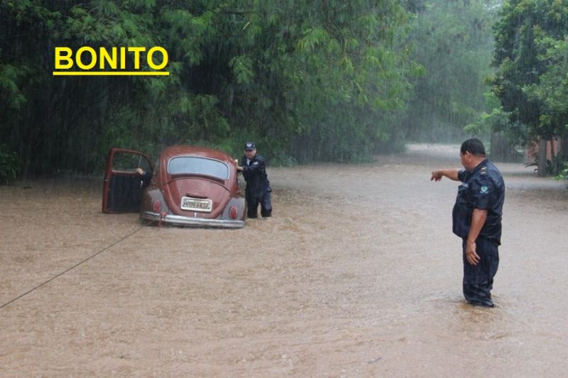 Chuva de 12 horas ininterruptas deixou o município de Bonito ilhado, com as ent...