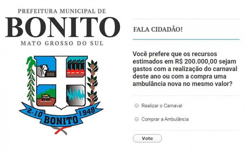 Você decide: Carnaval ou ambulância? Prefeitura de Bonito faz enquete para gastar dinheiro público