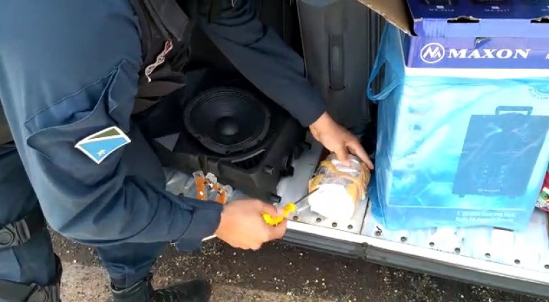 PMR em Dourados prende “mula do tráfico” transportando droga dentro de caixa do som