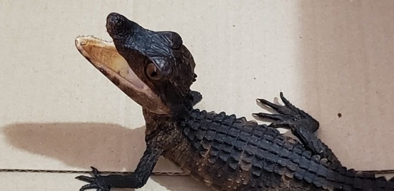 Em Três Lagoas: Filhote de jacaré sai da Lagoa para dar uma volta e é capturado do estacionamento do camelódromo