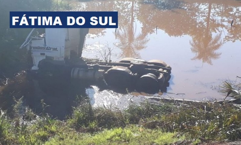 Motorista perde controle e carreta cai em ribanceira na MS-376
