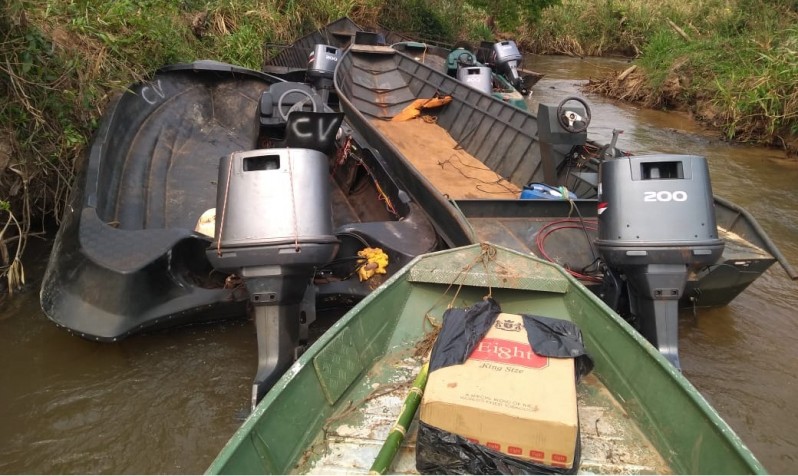 PMA de Mundo Novo desmonta acampamento e apreende 7 lanchas utilizadas em contrabando