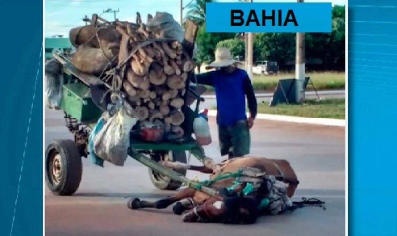 Cavalo 'desmaia' por não suportar carga em carroça e dono é detido após foto viralizar