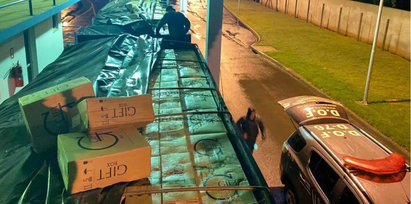 O DOF (Departamento de Operações de Fronteira) apreendeu uma carreta r...