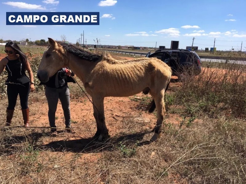 Cavalo vítima de maus-tratos é encontrado amarrado próximo a aeroporto e resgatado por policiais