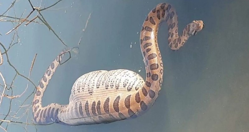 Sucuri de 5 metros que engoliu capivara é flagrada por turistas às margens do rio Paraná em MS