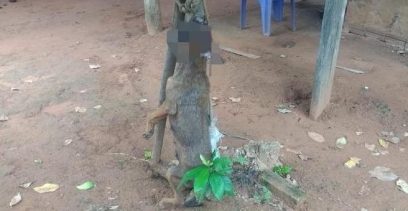 Idoso amarra cadela em árvore e mata animal a golpes de machado
