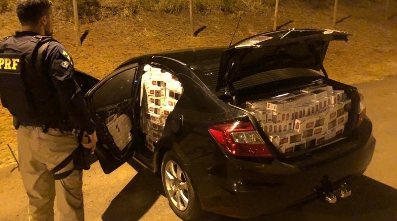 PRF apreende 500 mil maços de cigarros contrabandeados, motorista tenta fugir a pé é alcançado e preso