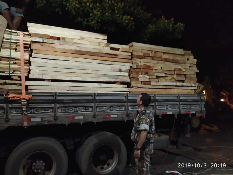 PMA de Mundo Novo autua empresa e apreende carga de madeira irregular
