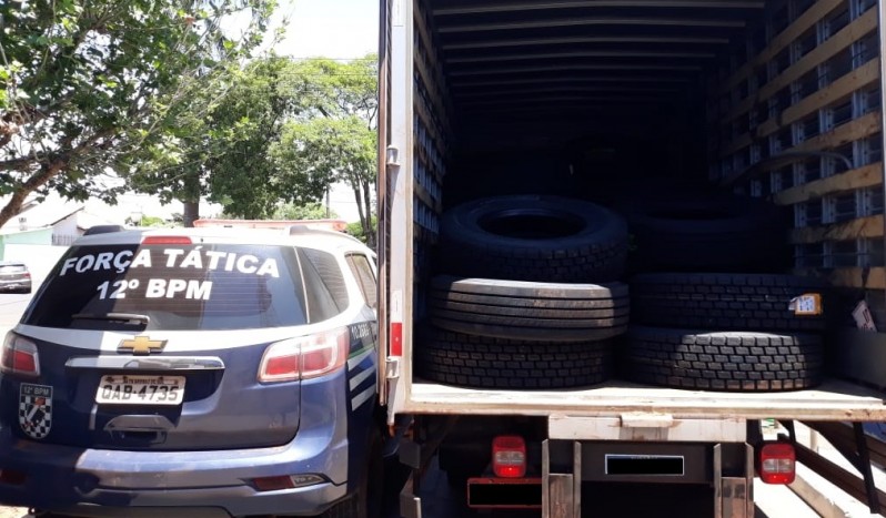 Força Tática de Naviraí apreende caminhão carregado com pneus descaminhados em Mundo Novo