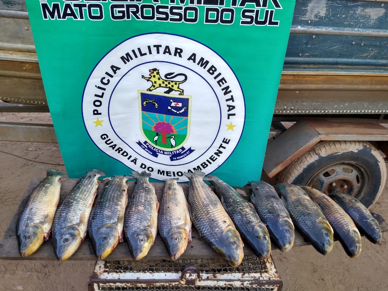 Policiais Militares Ambientais de Aquidauana realizavam fiscalização ambiental ontem (1), próximo ao “pesqueiro Sarará” no rio Aquidauana e abordaram uma embarcação onde estava um pescador amador que havia capturado 11 exemplares de peixes da espécie piavuçu, totalizando 10 kg, quando a legislação permite 5 kg mais um exemplar e cinco unidades de piranha, por pescador.