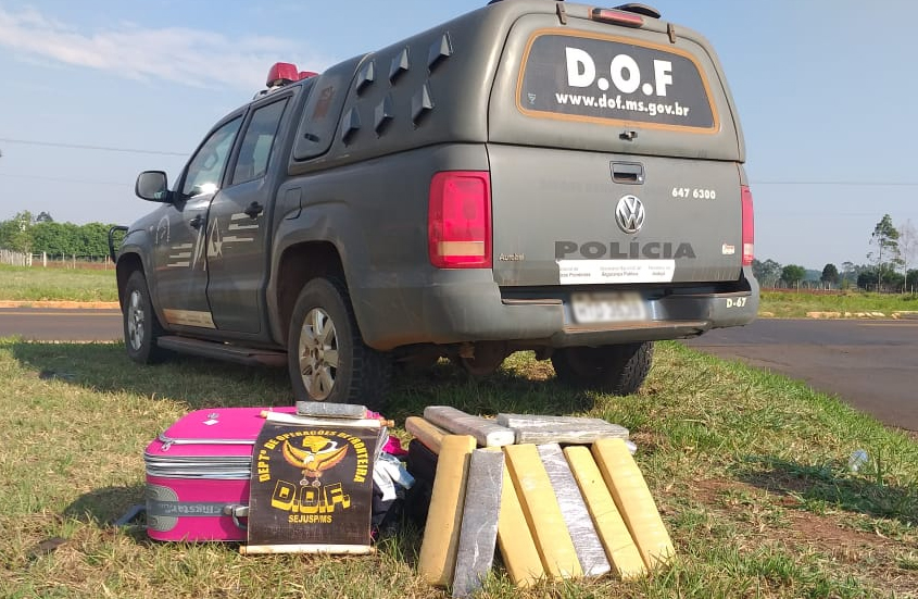 Policiais do Departamento de Operações de Fronteira (DOF) prenderam, na manhã desta terça-feira(05), uma jovem de 20 anos de idade que seguia para Campo Grande com 18 volumes prensados de uma substância entorpecente, aparentemente maconha, com peso total de 13,6 quilos.