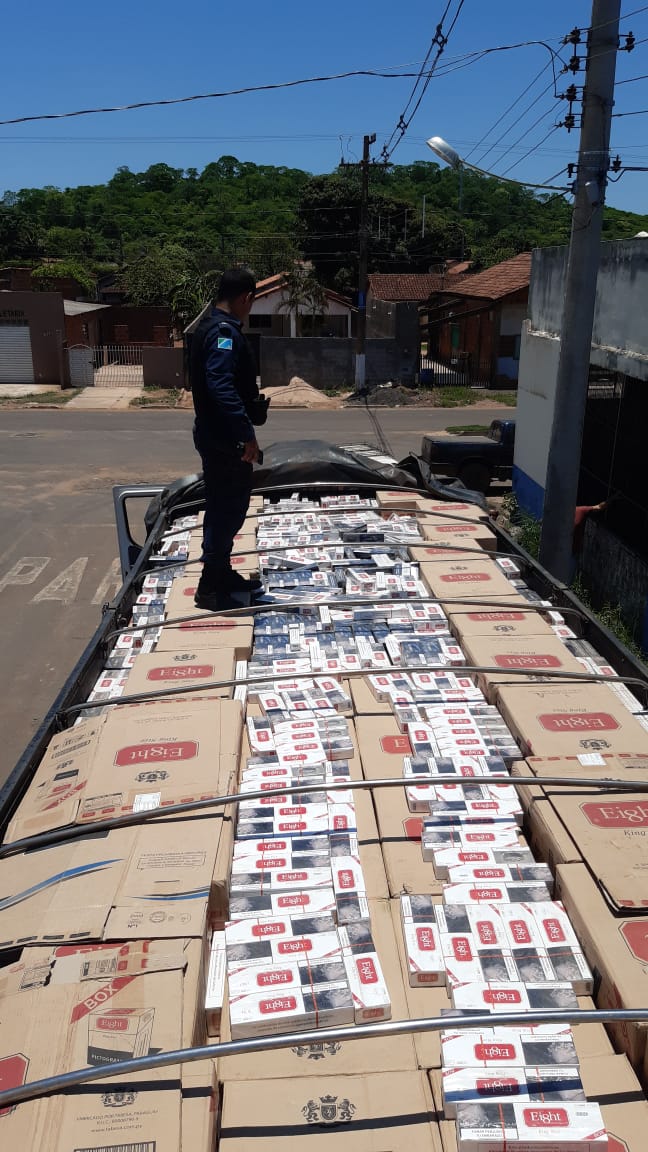 Durante a Operação Hórus, desencadeada pela SEJUSP/MS e pela Secretaria Nacional de Operações Integradas (SEOPI) do Ministério de Justiça e Segurança Pública, a Polícia Militar Rodoviária em ação conjunta com a Polícia Militar de Bodoquena, apreenderam nesta manhã (19), por volta das 10h, um caminhão carregado com aproximadamente 400 caixas de cigarro do Paraguai, e efetuou também a prisão de dois homens de 27 e 43 anos.