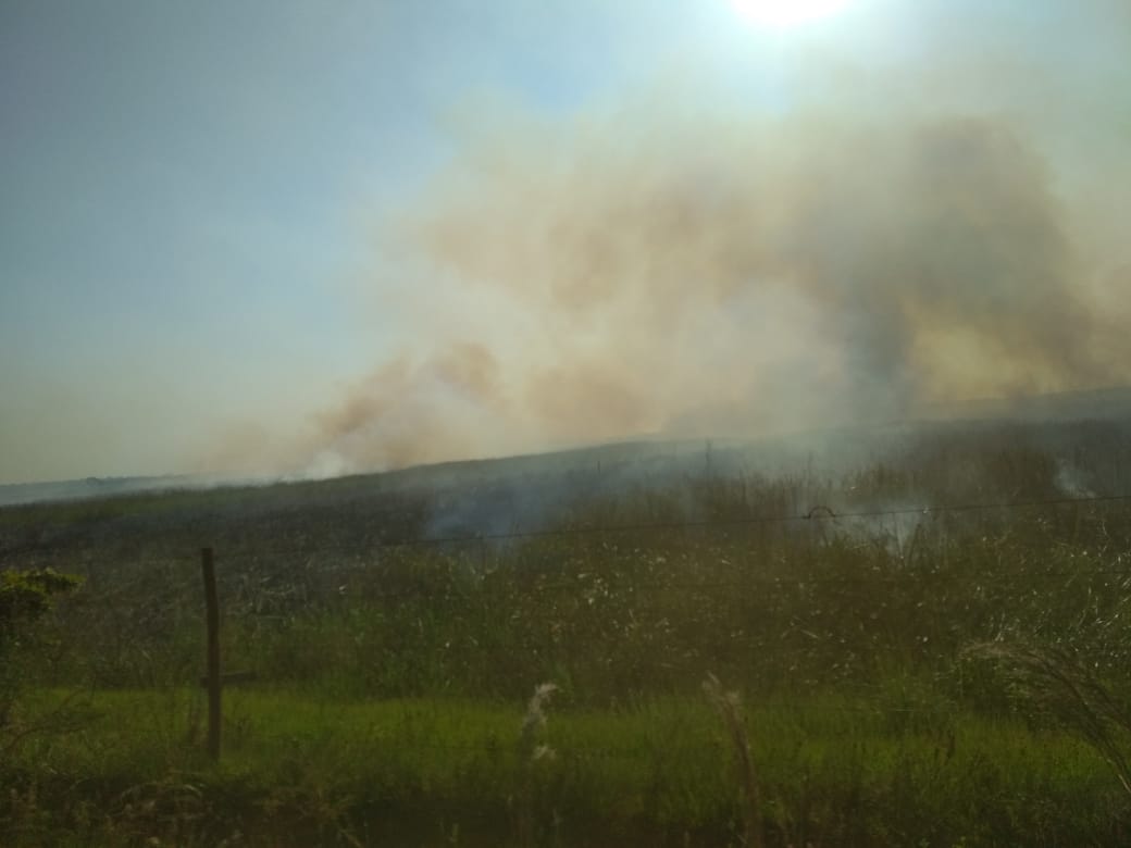 Policiais Militares Ambientais de Mundo Novo monitoravam um incêndio em uma área de pastagem em uma propriedade rural, localizada a 8 km da cidade, desde a tarde do dia 20. Em vários momentos, a cidade foi tomada pela fumaça, conforme a posição dos ventos.