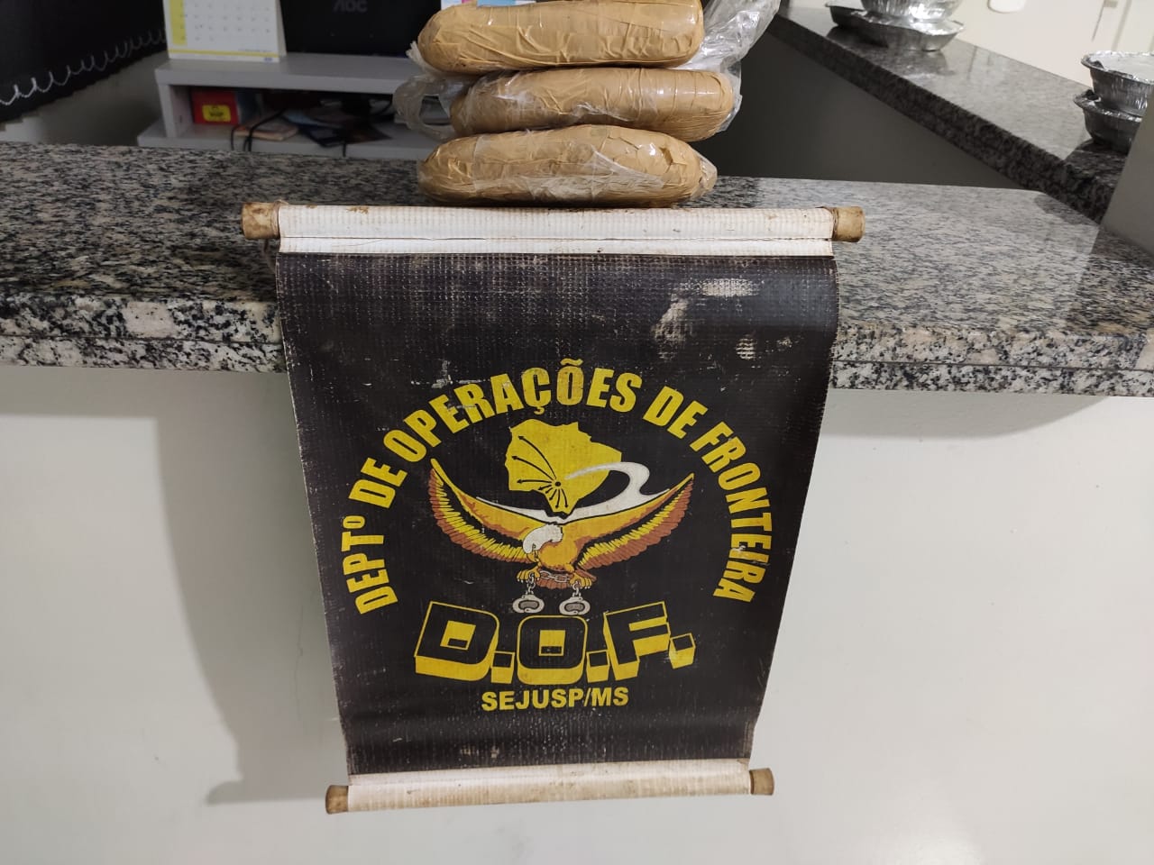 Policiais do Departamento de Operações de Fronteira (DOF) prenderam, na noite de sábado(08), uma mulher de 19 anos de idade que seguia para o Estado do Paraná com 3,6 quilos de haxixe presos ao próprio corpo.