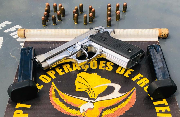 Policiais do Departamento de Operações de Fronteira (DOF) prenderam, na tarde desta quarta-feira(26), um homem de 48 anos de idade com uma pistola Taurus calibre 380, com dois carregadores e 26 munições intactas.