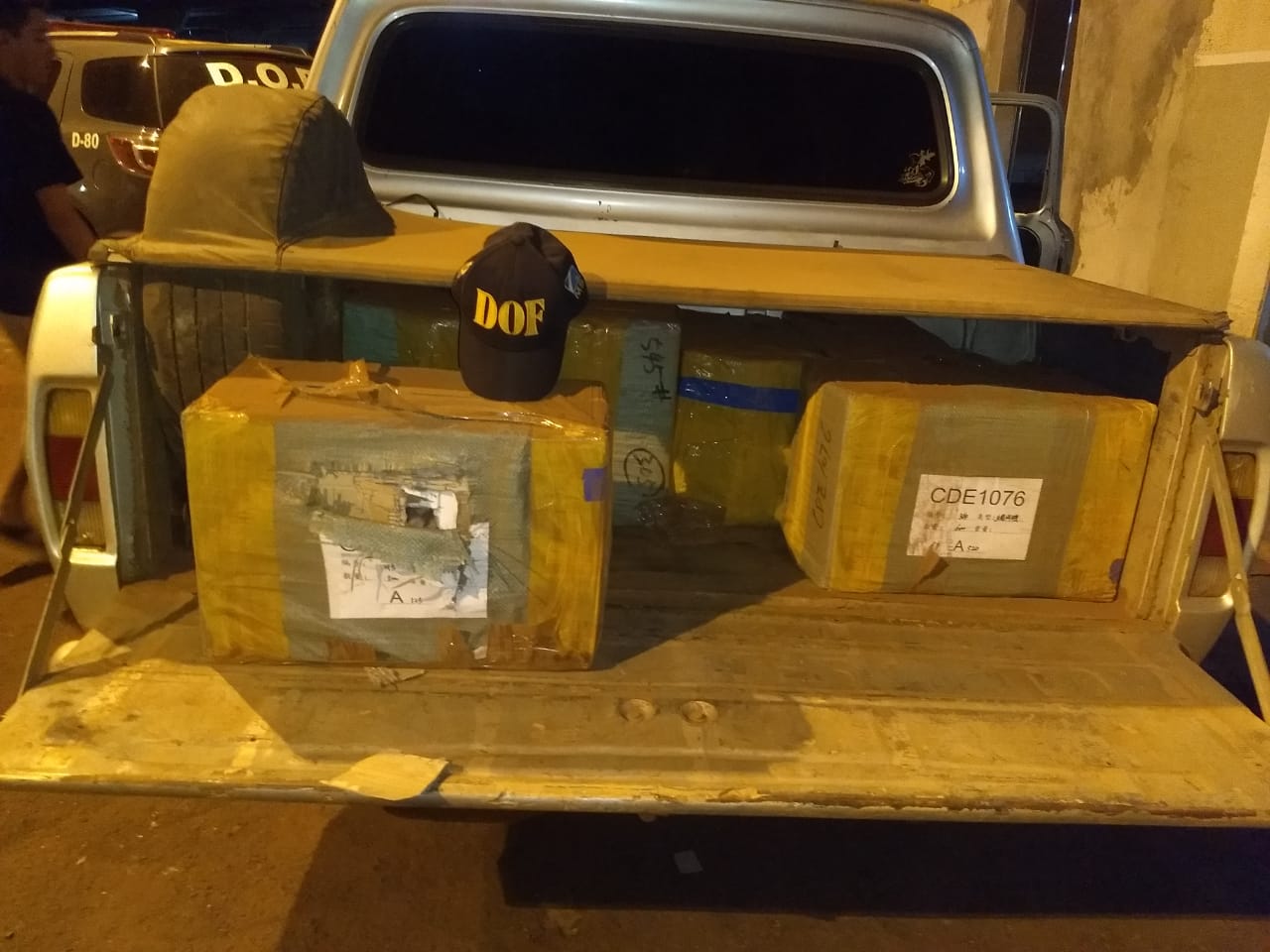 Policiais Militares do Departamento de Operações de Fronteira (DOF) apreenderam na noite de ontem(04), produtos do Paraguai que estavam em uma camionete Ford/F1000 SS. A apreensão de relógios, celulares e macaco hidráulico ocorreu em virtude da Operação Hórus, do Ministério da Justiça e Segurança Pública, durante o policiamento ostensivo na rodovia MS-379 em Laguna Carapã.