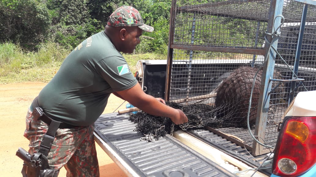 A PMA foi ao local e utilizando puçás e redes especiais capturou a capivara e colocou em uma jaula de contenção. Como o animal não apresentava ferimentos, os Policiais realizaram a soltura em uma área de vegetação distante da cidade.