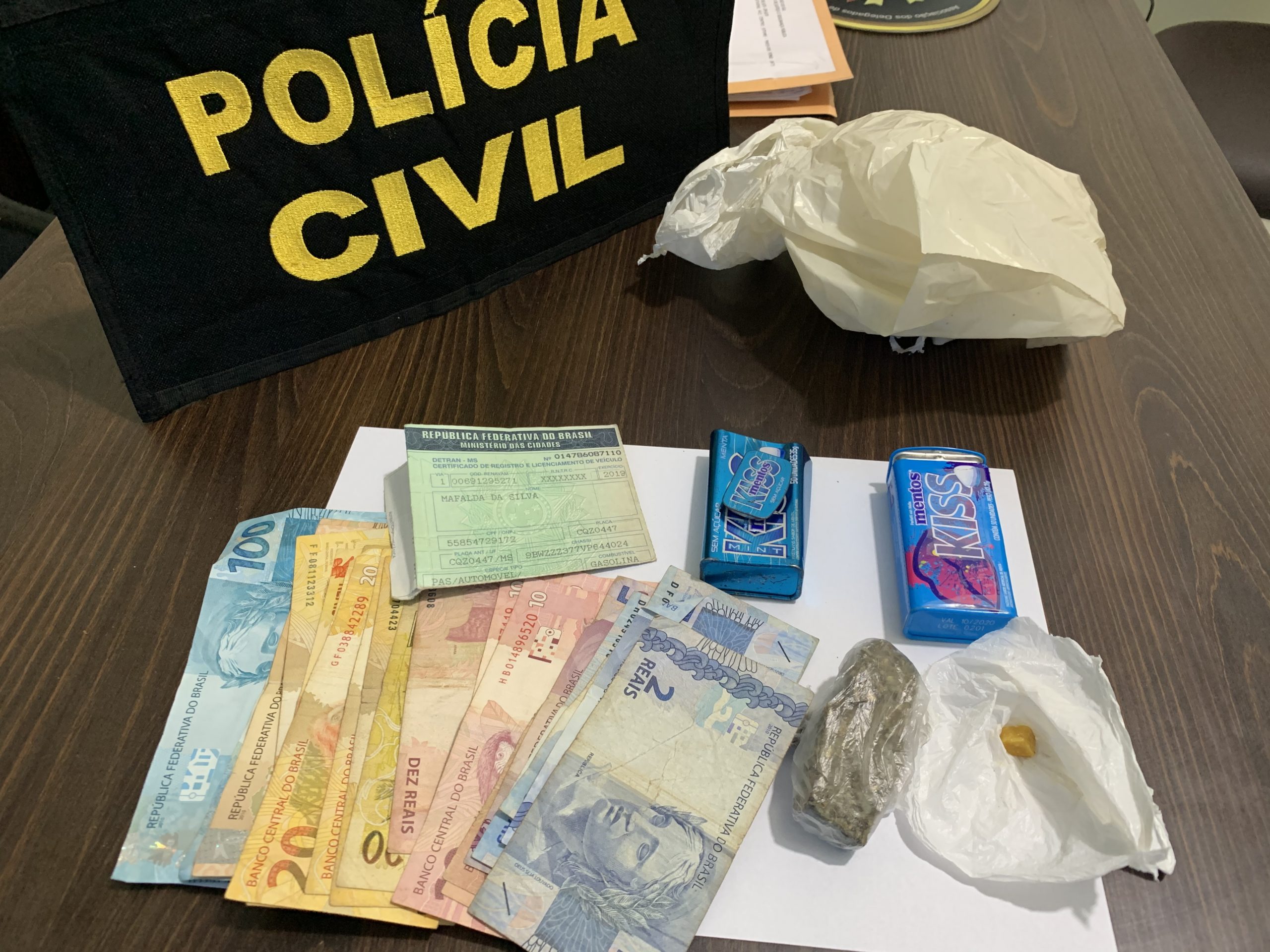 Diante dos fatos, em diligências pela cidade, os policiais civis conseguiram surpreender o suspeito, de 19 anos, transportando porções (papelotes) de maconha e crack. Também foram apreendidos dinheiro em notas de pequeno valor, material para embalar a substância, entre outros petrechos, razão pela qual ele também foi autuado em flagrante por tráfico de drogas e depois encaminhado ao presídio de Caarapó, onde se encontra a disposição da Justiça.