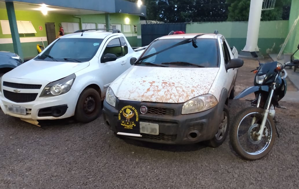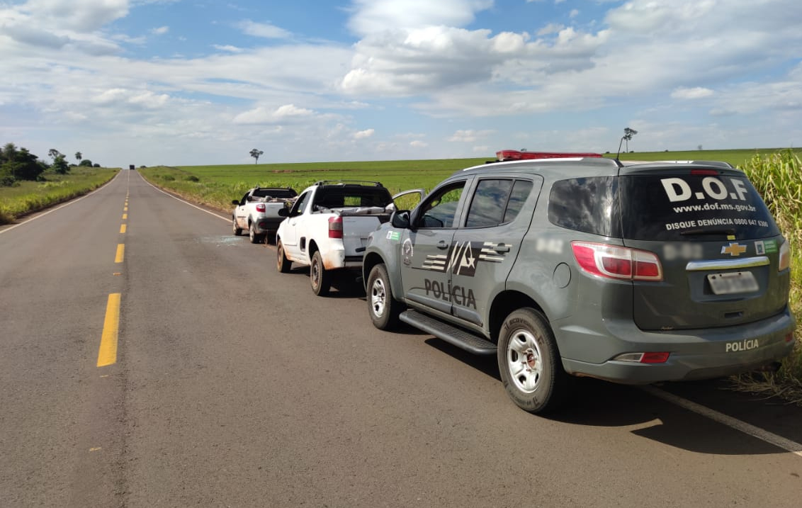 Os militares abordaram um cidadão brasileiro e um adolescente paraguaio que estavam às margens da Rodovia, juntamente com os veículos Fiat Strada e Chevrolet Montana. Durante a checagem dos agregados dos veículos (numeração do chassi e motor) identificou-se que a Chevrolet Montana estava com placas falsas e que existia um Boletim de Ocorrência pelo crime de Furto, na cidade de Campo Grande (MS).