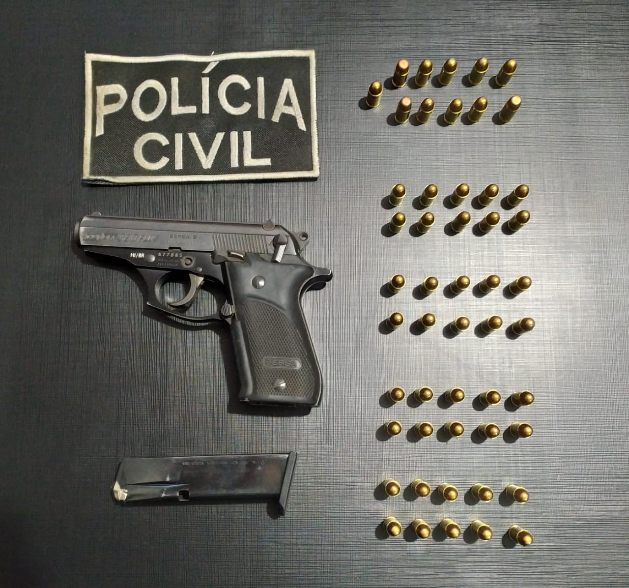 Durante as buscas, a Polícia Civil localizou uma pistola calibre 380 argentina e 51 munições sem registro. O homem foi autuado em flagrante por posse irregular. Além da arma, a polícia apreendeu também dois computadores, dois celulares e um HD externo, que serão encaminhado à perícia.