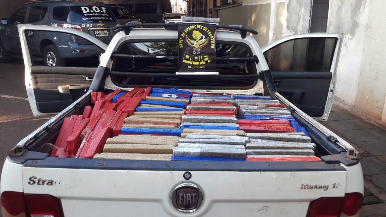 Policiais Militares do Departamento de Operações de Fronteira (DOF) apreenderam, na noite de ontem, dois veículos carregados com 3.087,00 quilos de maconha e 24 Kg de Skank. A ação ocorreu em virtude da Operação Hórus, do Ministério da Justiça e Segurança Pública, durante um patrulhamento na Rodovia MS-488, região de Itaquiraí.