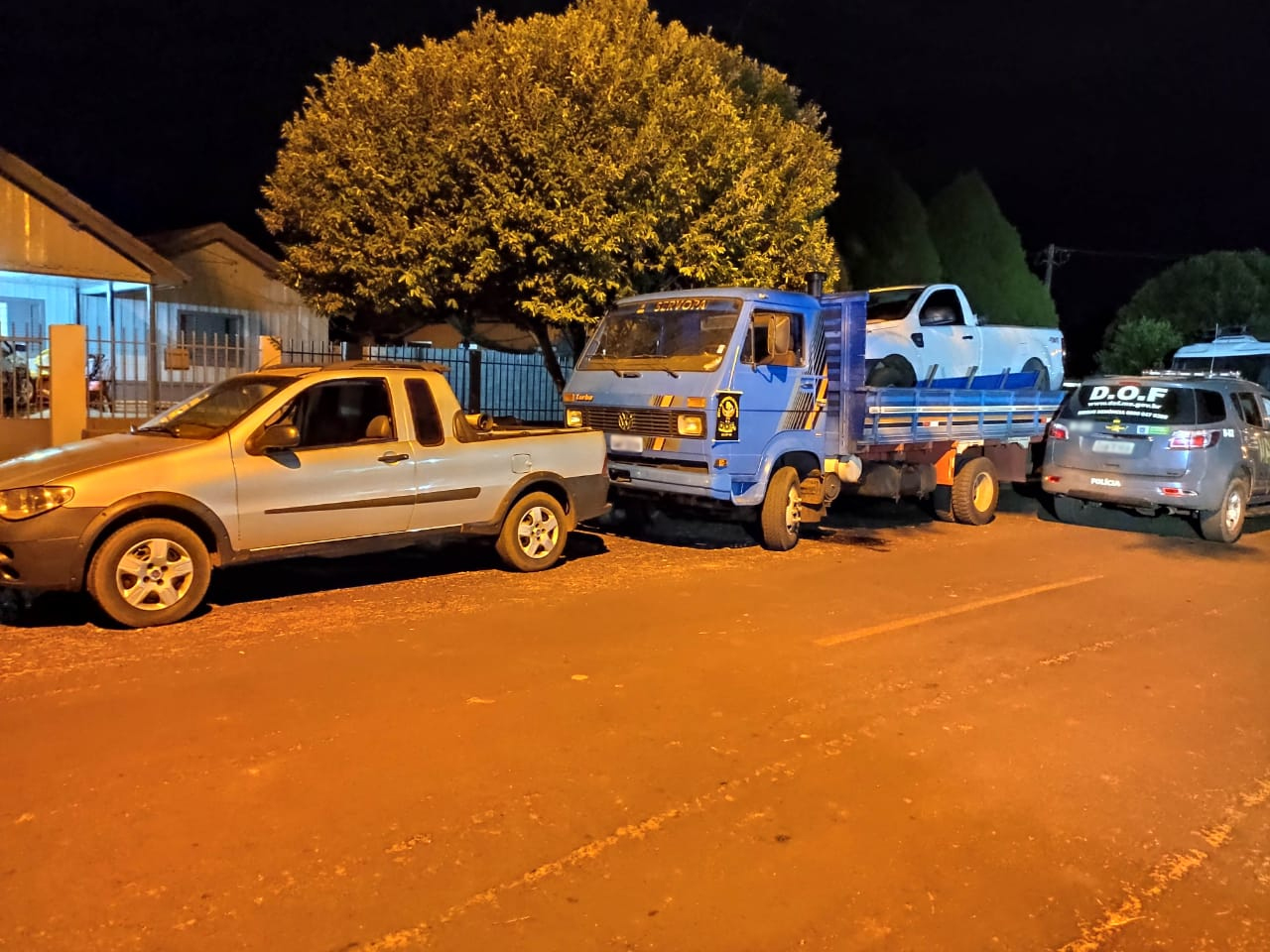 Durante a checagem dos agregados dos veículos, os policiais descobriram que o caminhão fora furtado no dia 29/03/2020 na cidade de Colorado (PR), sendo as placas verdadeiras de Lobato (PR). Já a Ford Ranger fora furtada em Pouso Alegre (MG), no dia 9/05/2020, sendo as placas verdadeiras da cidade de Brasópolis (MG).