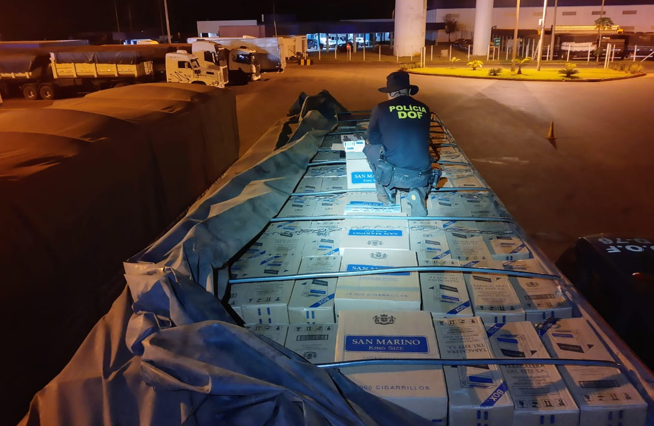 Policiais Militares do Departamento de Operações de Fronteira (DOF) apreenderam na noite de ontem(16), um Cavalo Trator acoplado a um Bitrem carregado com 50 mil pacotes de cigarros de origem estrangeira contrabandeados do Paraguai.