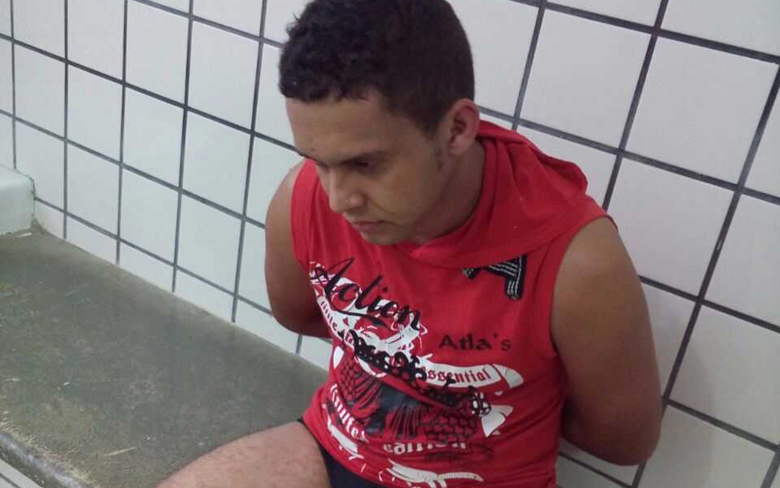 Edivan Ferreira de Souza foi detido na madrugada de sábado (4). Na delegacia, o suspeito vestia apenas uma blusa e uma cueca.