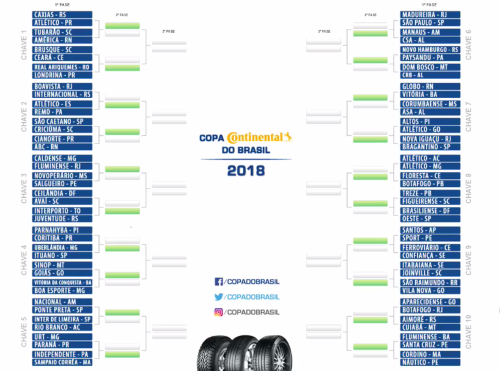 Foram definidos nesta sexta-feira os confrontos da primeira fase da Copa do Brasil de 2018. O sorteio foi realizado na sede da CBF, no Rio de Janeiro. A etapa inicial tem 80 participantes e será disputada entre 31 de janeiro e 7 de fevereiro. Os duelos serão em jogos únicos fora de casa para os times de maior expressão, com vantagem do empate para classificação.
