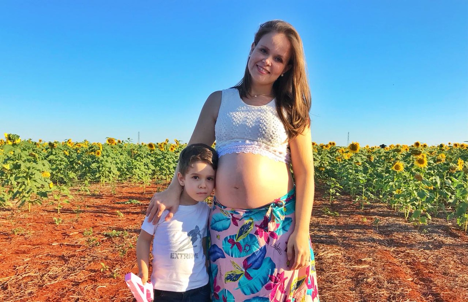 Entre as grávidas que posavam para as lentes dos fotógrafos, estava a dona de casa Bianca Rezende. Grávida de Amanda, o filho Artur foi junto para participar do ensaio de gestante. Ela escolheu o campo porque viu fotos lindas nas redes sociais e quis as dela lá também: