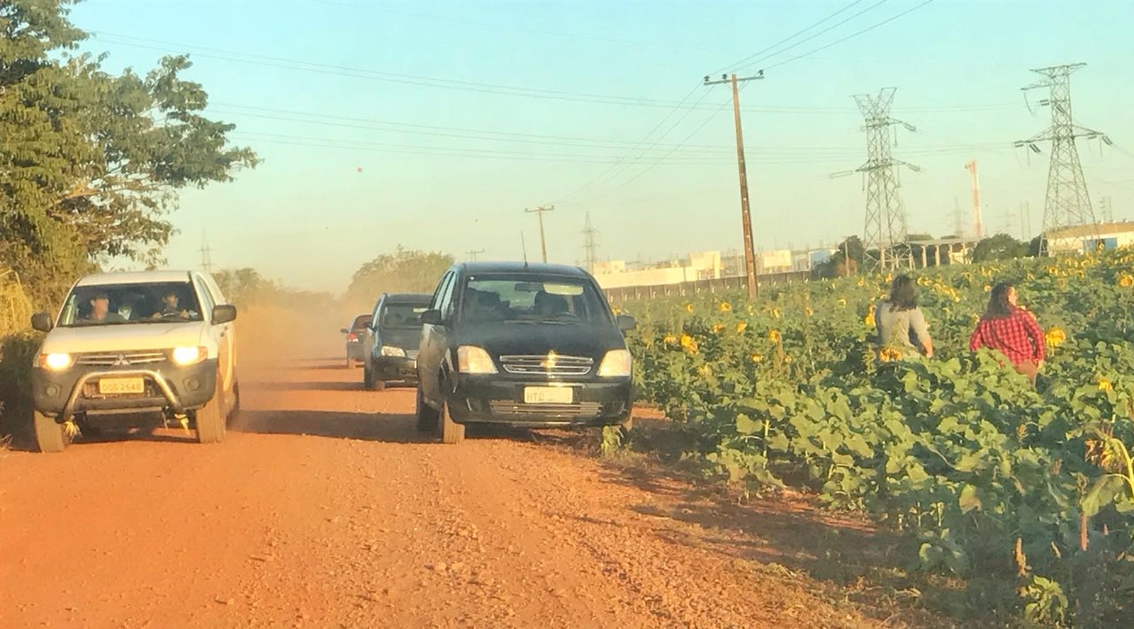 Ao chegar na lavoura, um pequeno espaço de terra nua está cheio de carros. De acordo com uma visitante que estava lá pela segunda vez, quando ela foi muitos carros e caminhonetes estavam estacionados em cima das flores. O espaço para carros lota, e então as pessoas deixam os veículos na beira da estrada vicinal que dá acesso ao campo.
